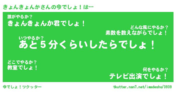 | 恥ずかしいあだ名 | 『プリティーきょんきょんか』『きょちん』 |