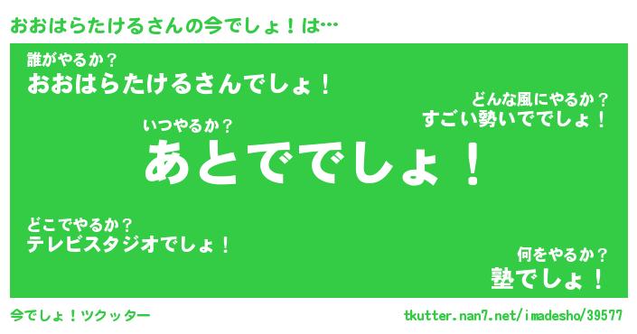 | 胡散臭い通販商品みたいなあだ名 | 『モテモテ間違いなし霊験あらたかなお札…その名も「おおはらたける」』 |
