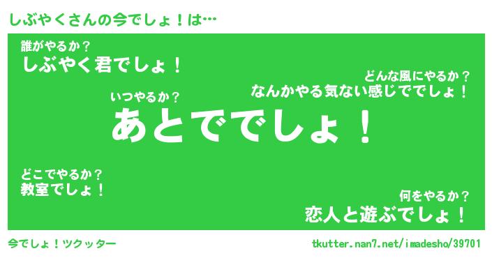 | 胡散臭い通販商品みたいなあだ名 | 『モテモテ間違いなし水晶球…その名も「しぶやく」』 |