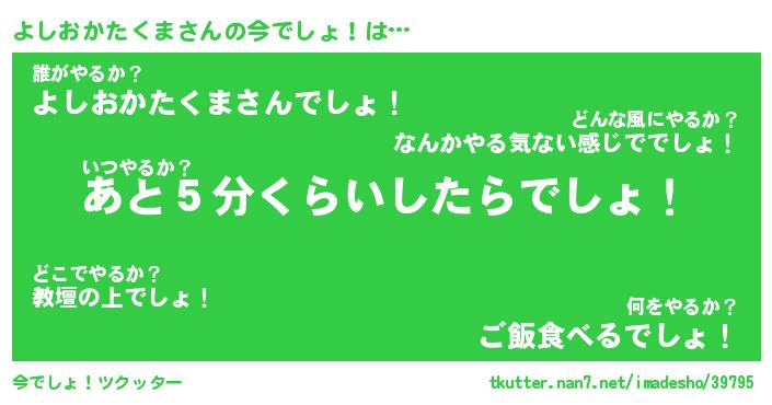 | ヘコむあだ名 | 『よしふぇ~』『牛乳』『よしっちょ』 |