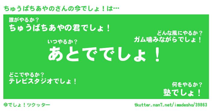 | 伝説のあだ名 | 『不死鳥のスナイパーちゅうばちあやの』 |