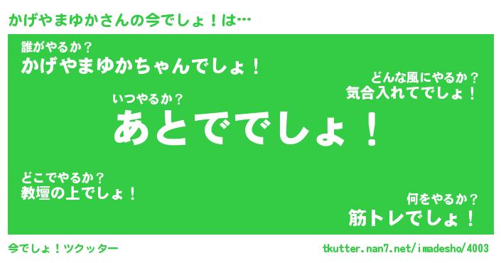 | 肩書あだ名 | 『かげやまゆか社長』『かげやまゆか塾長』 |