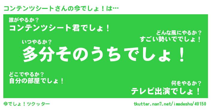 | 胡散臭い通販商品みたいなあだ名 | 『モテモテ間違いなし霊験あらたかなお札…その名も「コンテンツシート」』 |