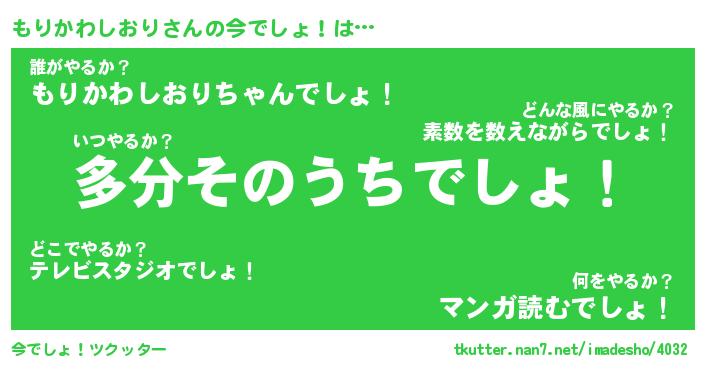 | 胡散臭い通販商品みたいなあだ名 | 『モテモテ間違いなしブレスレット…その名も「もりかわしおり」』 |