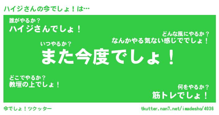 | ヒーロー風カッコイイあだ名 | 『スーパーハイジ』『ウルトラハイジマン』 |