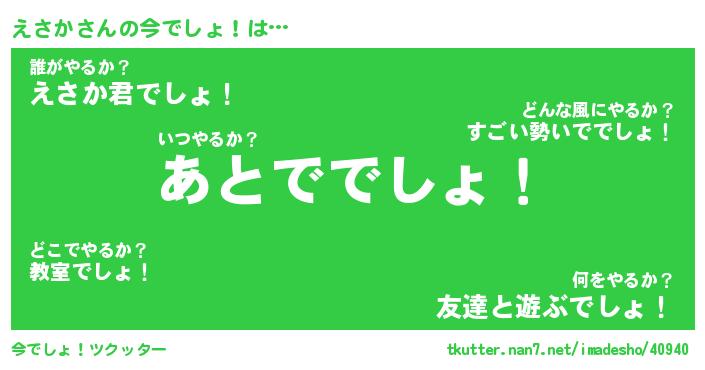 | ヒーロー風カッコイイあだ名 | 『スーパーエサカ』『ウルトラえさかマン』 |