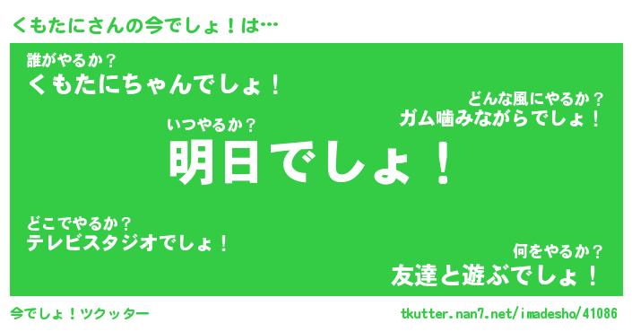 | 意味不明あだ名 | 『ペロリンくもたに』『永久保存くもたに』 |