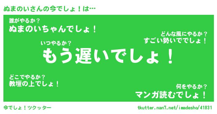 | 2回繰り返すあだ名 | 『ぬまぬま』『ぬぬまま』『いそいそ』 |