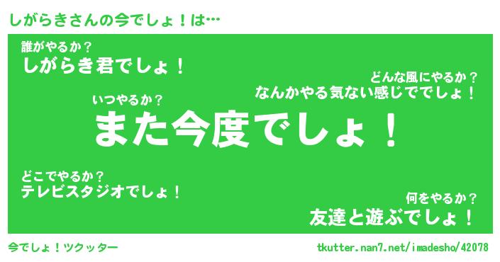 | 意味不明あだ名 | 『ペロリンしがらき』『永久保存しがらき』 |