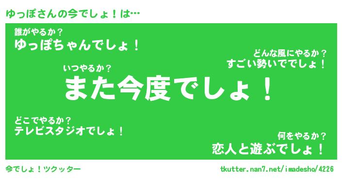 | ヒーロー風カッコイイあだ名 | 『スーパーユッポ』『ウルトラゆっぽマン』 |