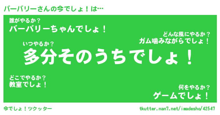 | ヒーロー風カッコイイあだ名 | 『スーパーバーバリー』『天弓騎士バー』 |