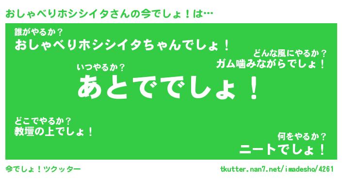 | 胡散臭い通販商品みたいなあだ名 | 『モテモテ間違いなし水晶球…その名も「おしゃべりホシシイタ」』 |