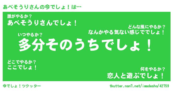 | 肩書あだ名 | 『あべそうり社長』『あべそうり大統領』 |