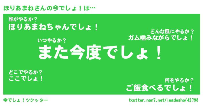| ヘコむあだ名 | 『ほりふぇ~』『酢こんぶ』『ほりを』 |