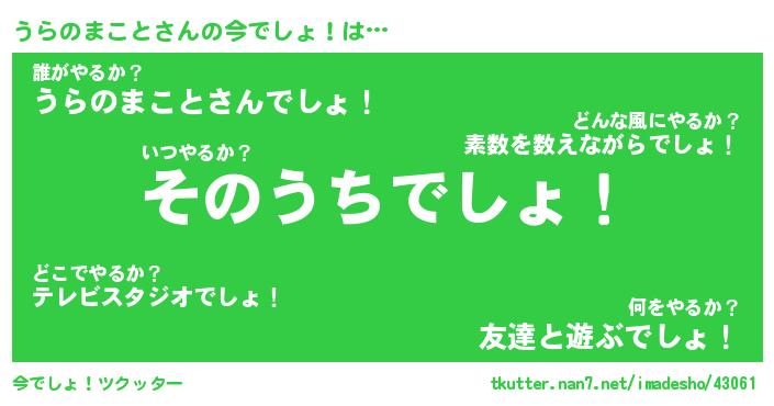 | 伝説のあだ名 | 『伝説のスナイパーうらのまこと』 |