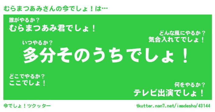 | 恥ずかしいあだ名 | 『プリティーむらまつあみ』『むらっちょ』 |