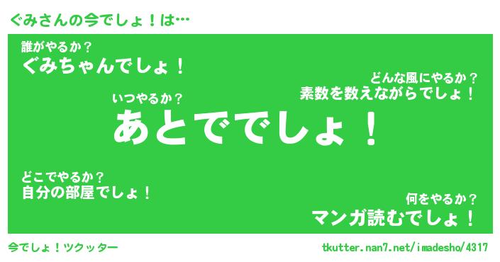 | 肩書あだ名 | 『ぐみCEO』『ぐみ大統領』『ぐみ団長』 |