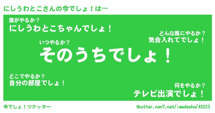 | 恥ずかしいあだ名 | 『プリティーにしうわとこ』『にしっちょ』 |
