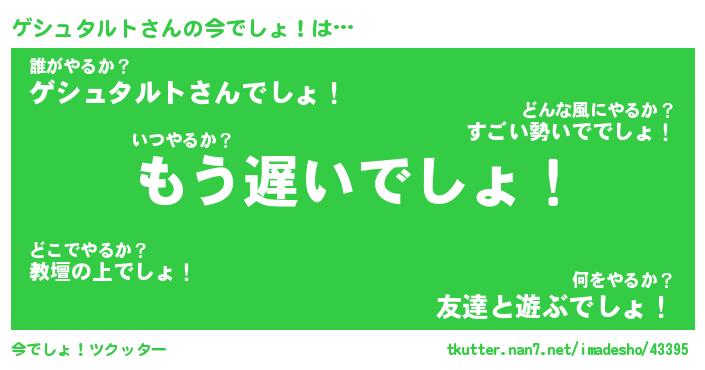 | ポケモン風あだ名 | 『ゲシチュウ』『ゲシュダネ』 |