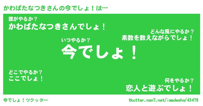 | 伝説のあだ名 | 『伝説のスナイパーかわばたなつき』 |