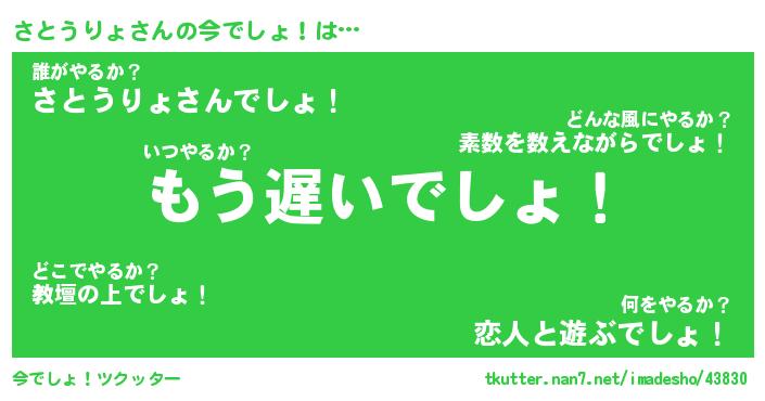 | 胡散臭い通販商品みたいなあだ名 | 『必ず成功するブレスレット…その名も「さとうりょ」』 |