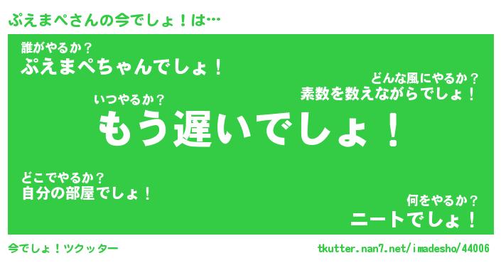 | 男性向けラノベタイトル風あだ名 | 『ぷえまぺの憂鬱』 |
