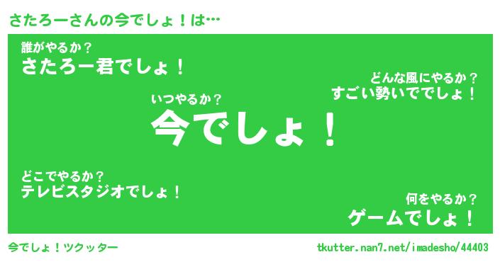 | 意味不明あだ名 | 『ペロリンさたろー』『永久保存さたろー』 |