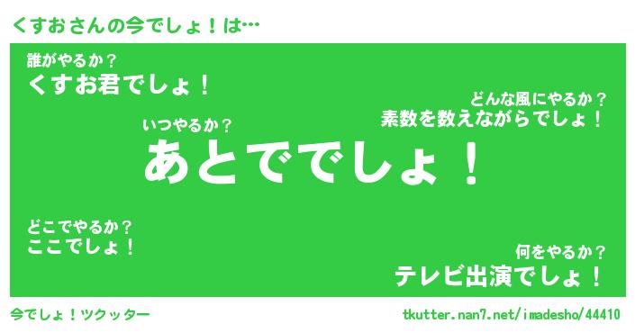 | 意味不明あだ名 | 『ペロリンくすお』『くすおフォーエバー』 |