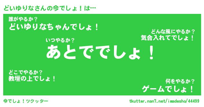 | 恥ずかしいあだ名 | 『プリティーどいゆりな』『どいっちょ』 |
