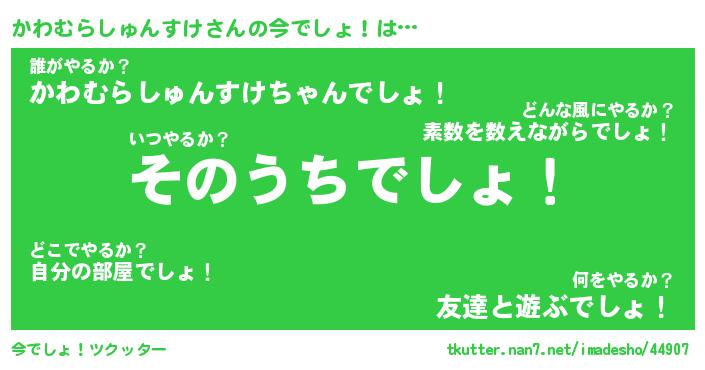 | 伝説のあだ名 | 『伝説のスナイパーかわむらしゅんすけ』 |