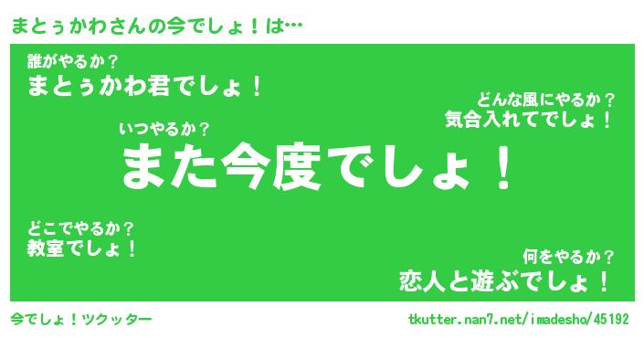 | ヘコむあだ名 | 『まともー』『豆乳』『まとっ子』 |