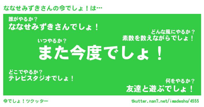 | 恥ずかしいあだ名 | 『プリティーななせみずき』『ななっちょ』 |