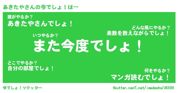 | 意味不明あだ名 | 『ペロリンあきたや』『永久保存あきたや』 |