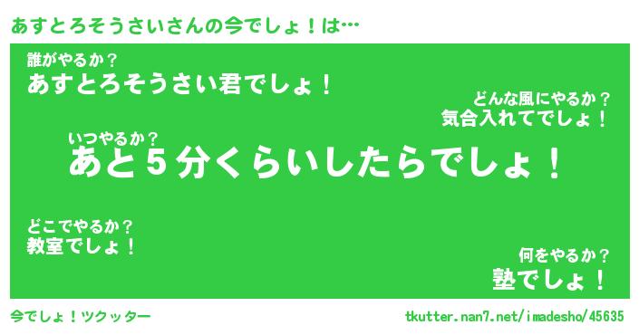 | 伝説のあだ名 | 『不死鳥のスナイパーあすとろそうさい』 |