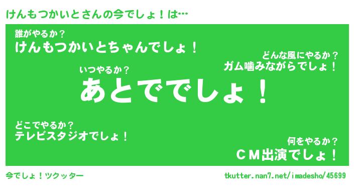 | ヘコむあだ名 | 『けんもー』『レバニラ』『けんを』 |