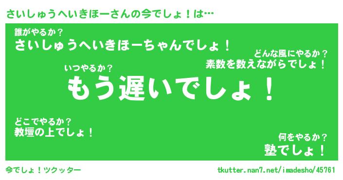 | ヒーロー風カッコイイあだ名 | 『スーパーサイシュウヘイキホー』 |
