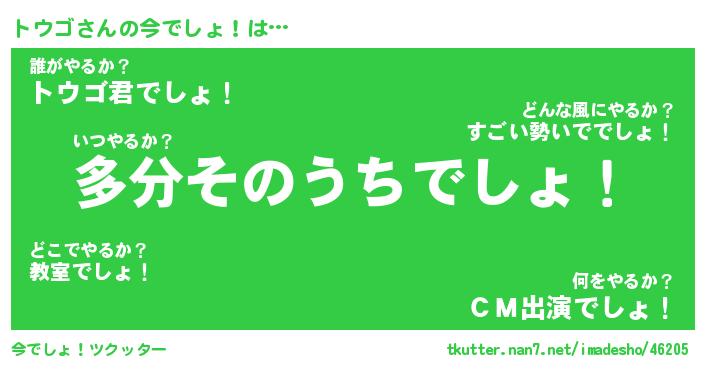 | 意味不明あだ名 | 『ペロリントウゴ』『トウゴフォーエバー』 |