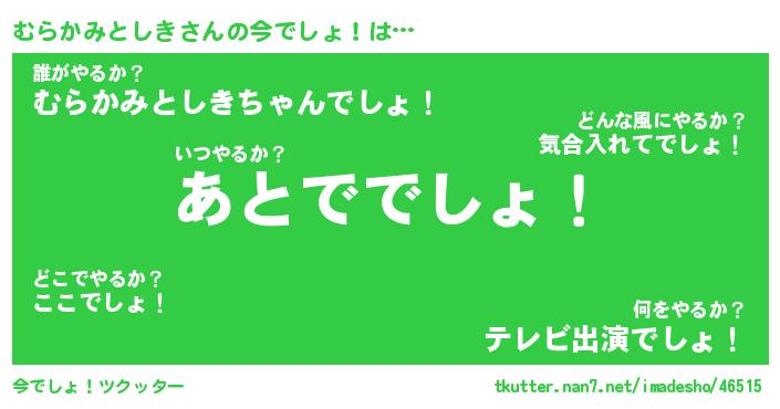 | 伝説のあだ名 | 『不死鳥のスナイパーむらかみとしき』 |