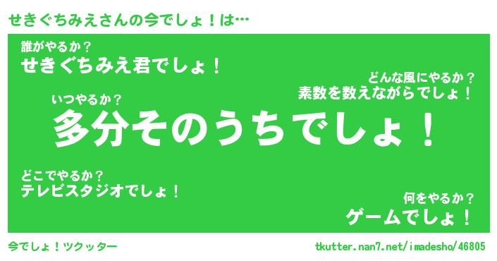 | 肩書あだ名 | 『せきぐちみえ店長』『せきぐちみえ団長』 |