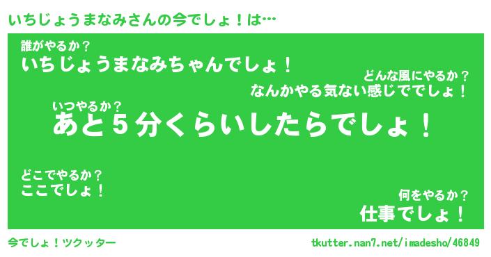 | ツイッター | いちじょうまなみさんのツイッターID『namakemono_kun』 |