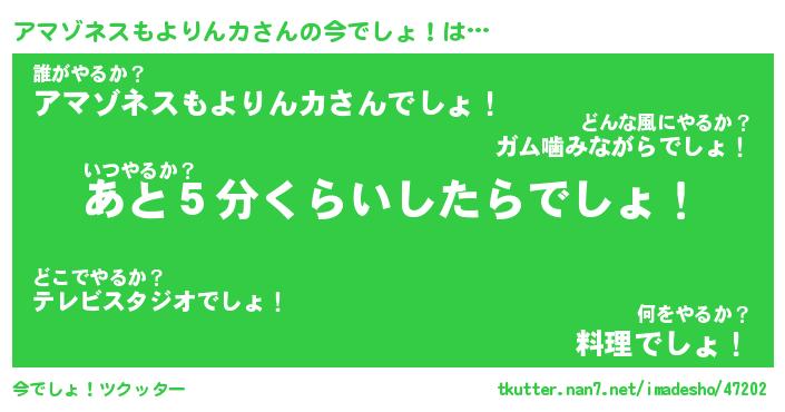 | 料理風あだ名 | 『ネギたっぷりアマゾネスもよりんカの南蛮漬け』 |