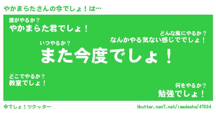 | ヒーロー風カッコイイあだ名 | 『スーパーヤカマラタ』『暗黒騎士ヤカ』 |