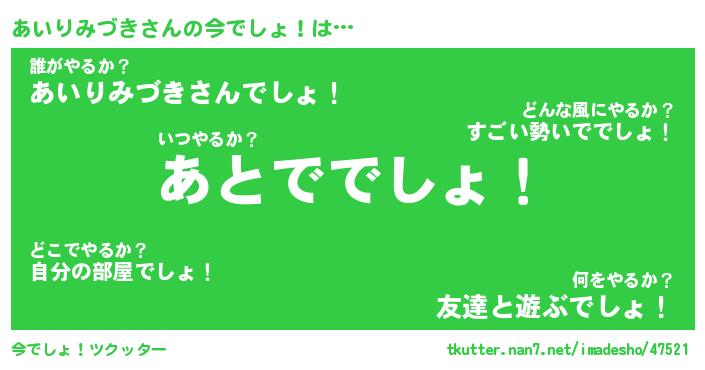 | 胡散臭い通販商品みたいなあだ名 | 『モテモテ間違いなし霊験あらたかなお札…その名も「あいりみづき」』 |