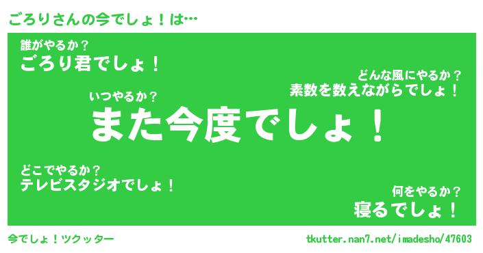| ヘコむあだ名 | 『ごろにー』『なまこ酢』『ごろ太郎』 |