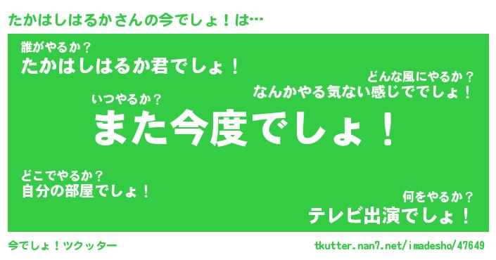 | 恥ずかしいあだ名 | 『プリティーたかはしはるか』『たかちん』 |