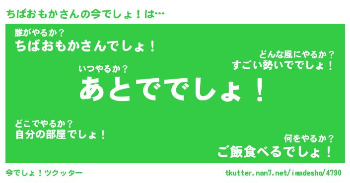 | ヒーロー風カッコイイあだ名 | 『スーパーチバオモカ』『魔戒騎士チバ』 |