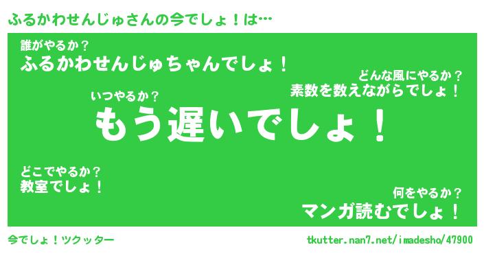 | 男性向けラノベタイトル風あだ名 | 『ふるかわせんじゅの憂鬱』 |