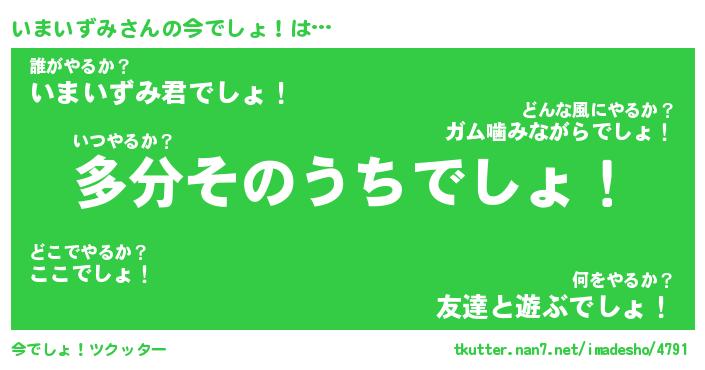 | ポケモン風あだ名 | 『イマチュウ』『イマイダネ』 |
