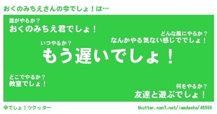 | 男性向けラノベタイトル風あだ名 | 『おくのみちえの憂鬱』 |