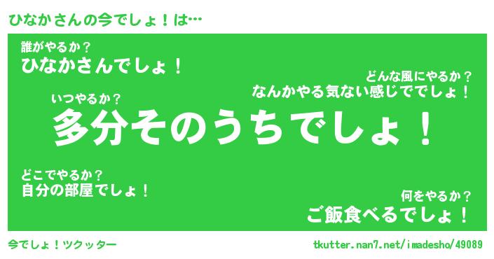 | 料理風あだ名 | 『節約★ひなかと油揚げの玉子丼』 |